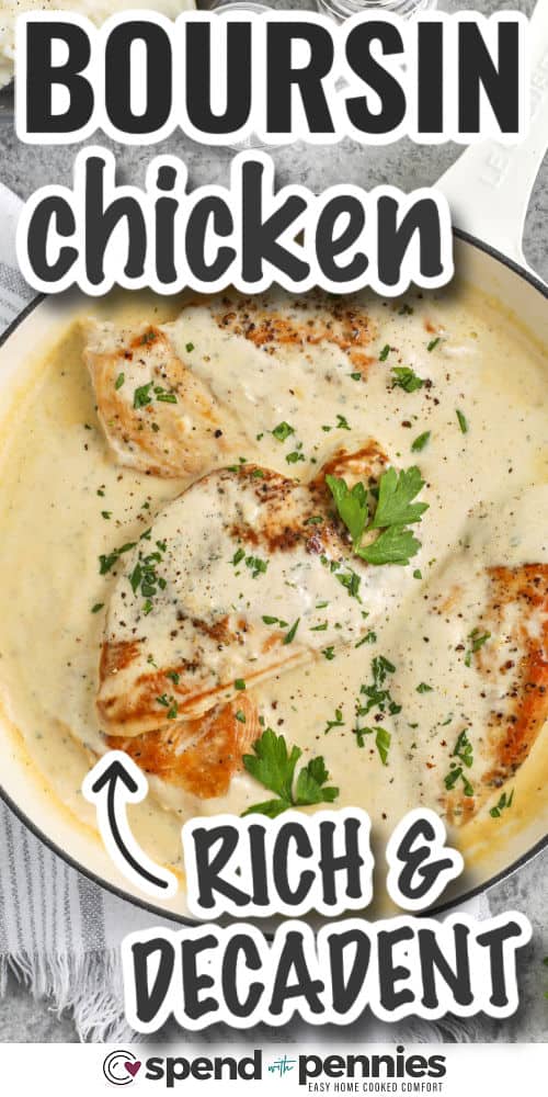 Make this easy Boursin Chicken with tender chicken cutlets simmered in a creamy garlic herb cheese sauce. It’s a one-skillet dinner that goes from the stove to table in about 17 minutes.