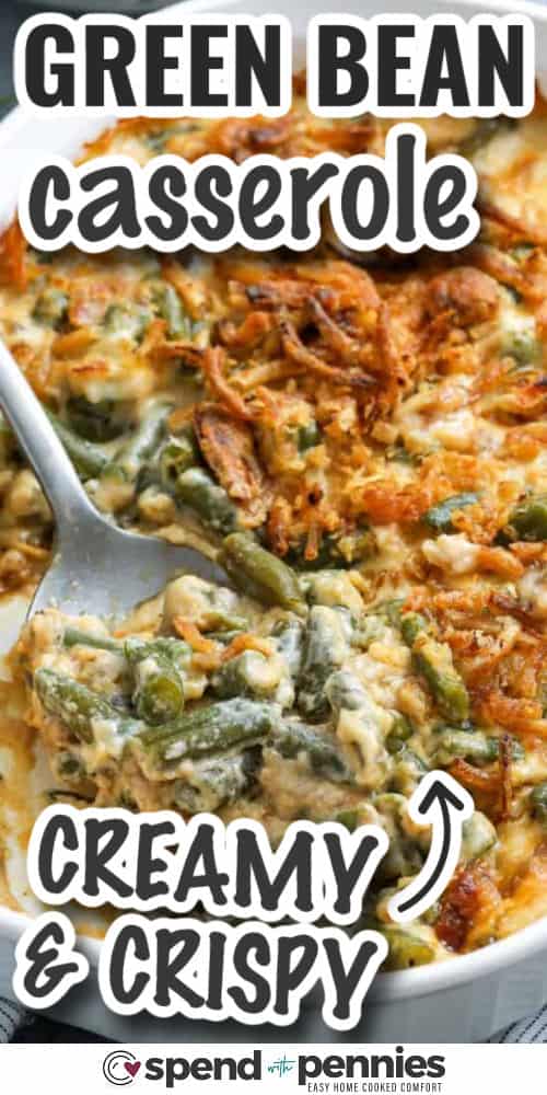 Everyone loves a classic green bean casserole recipe with tender green beans and crispy fried onions in a shortcut creamy mushroom sauce. This is a perfect Thanksgiving side topped with crispy french-fried onions and baked until golden brown and bubbly.