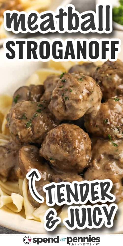 This meatball stroganoff recipe has that heavenly, slow-cooked flavor, and it’s surprisingly easy to make! Tender, juicy meatballs are smothered in a creamy mushroom sour cream sauce and served over your choice of noodles, rice, or mashed potatoes!