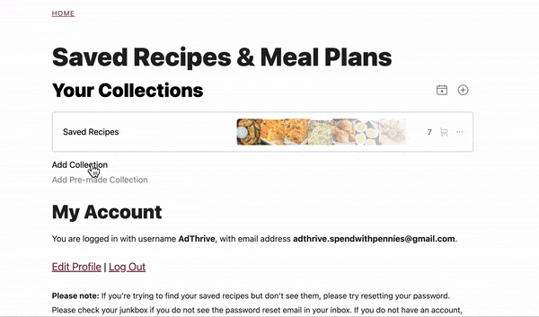 From your “Saved Recipes & Meal Plans” page, click the “Add Collection” prompt below your collections. You can change the name of the Category to a name that make sense for you.