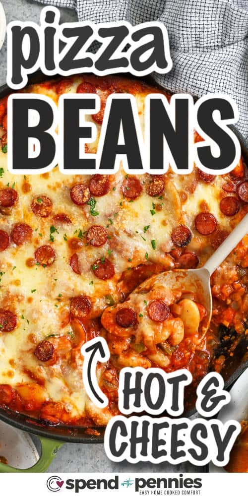 This pizza beans recipe is a family-friendly casserole that’s ready in minutes. Two kinds of beans and mini pepperonis are baked in a zesty pizza sauce under a crust of bubbly cheese for a fun and delicious dinner that’s kid-approved.