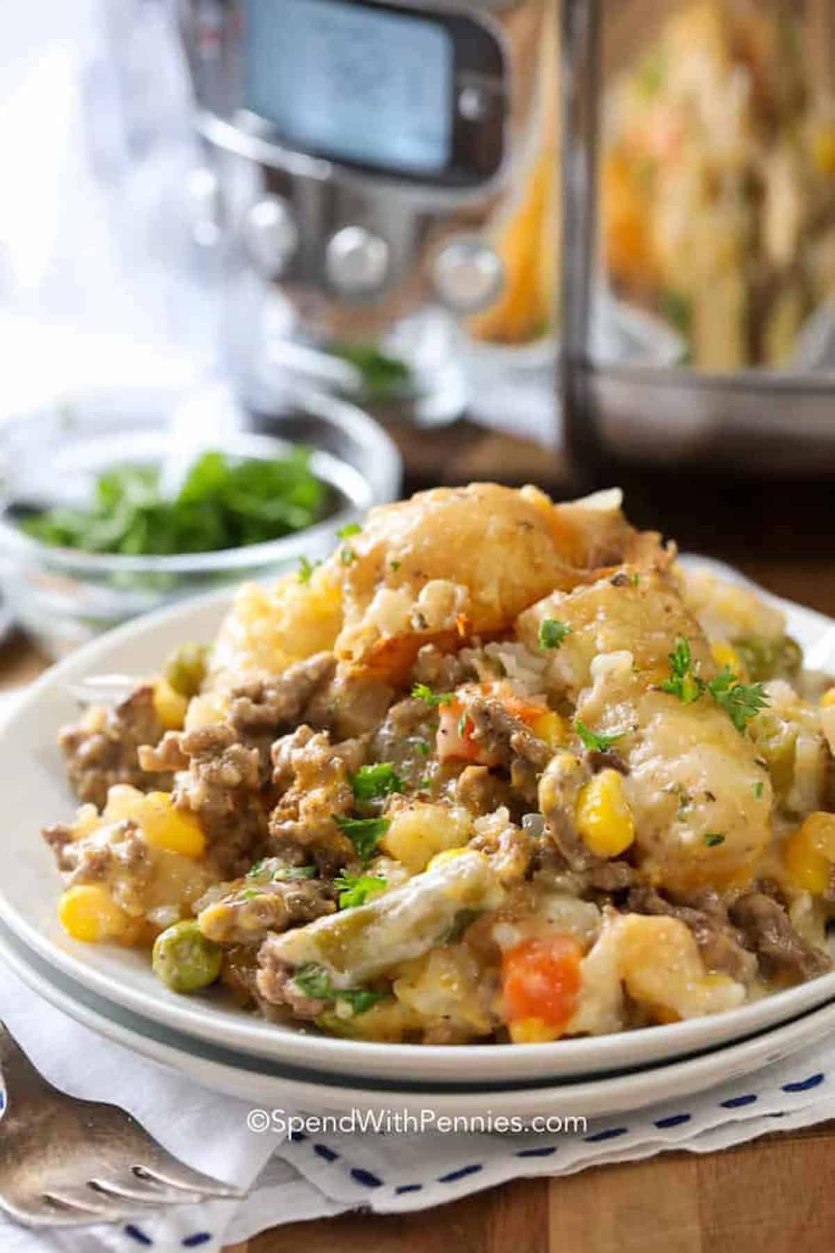 Slow Cooker Tater Tot Casserole is an incredibly easy dish to make and everyone always loves it!